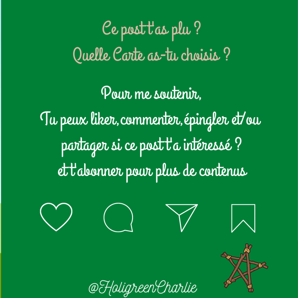 Tu peux parcourir mes pages Instagram holigreencharlie https://www.instagram.com/holigreencharlie/?hl=fr et Facebook Holigreen Charlie https://www.facebook.com/holigreencharlie et découvrir d’autres Guidances Intemporelles et articles en lien avec l’énergétique, La Spiritualité, La Médecine Holistique, Le Coaching Holistique, Le Magnétisme, La Lunologie, L’astrologie, La Numérologie et autres…