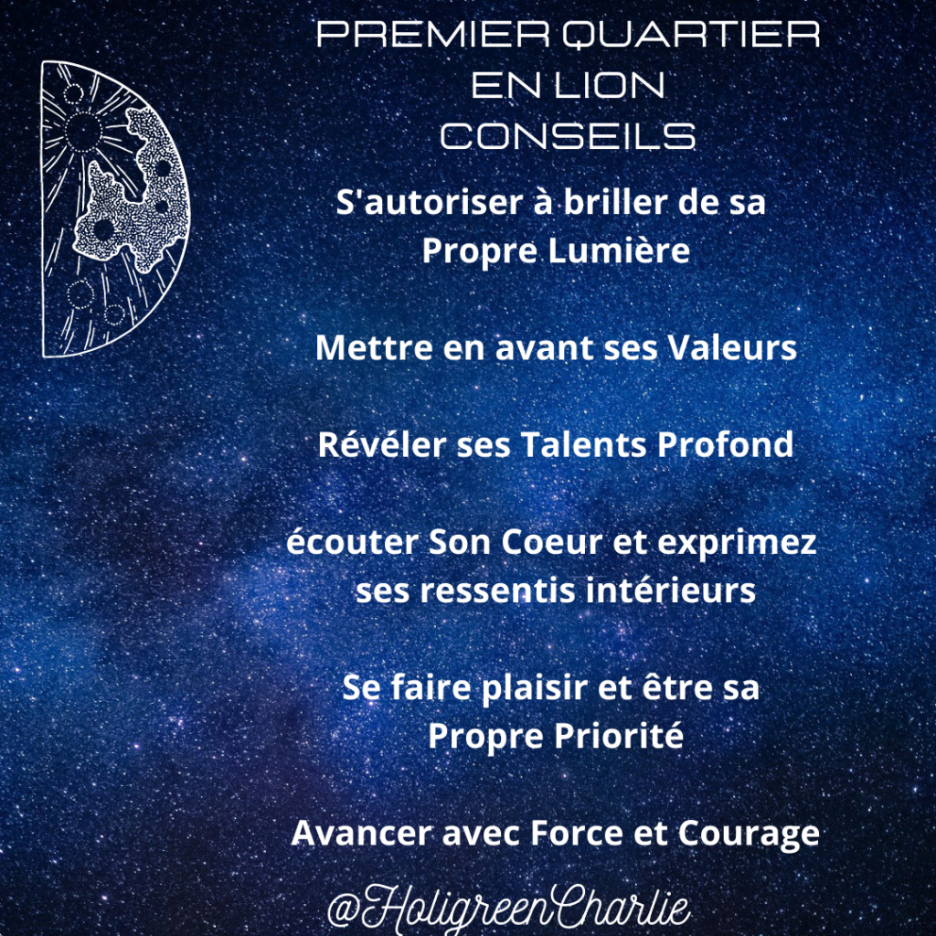 Lundi matin à 2h22 aura lieu le Premier Quartier de Lune 🌓En Lion♌️
